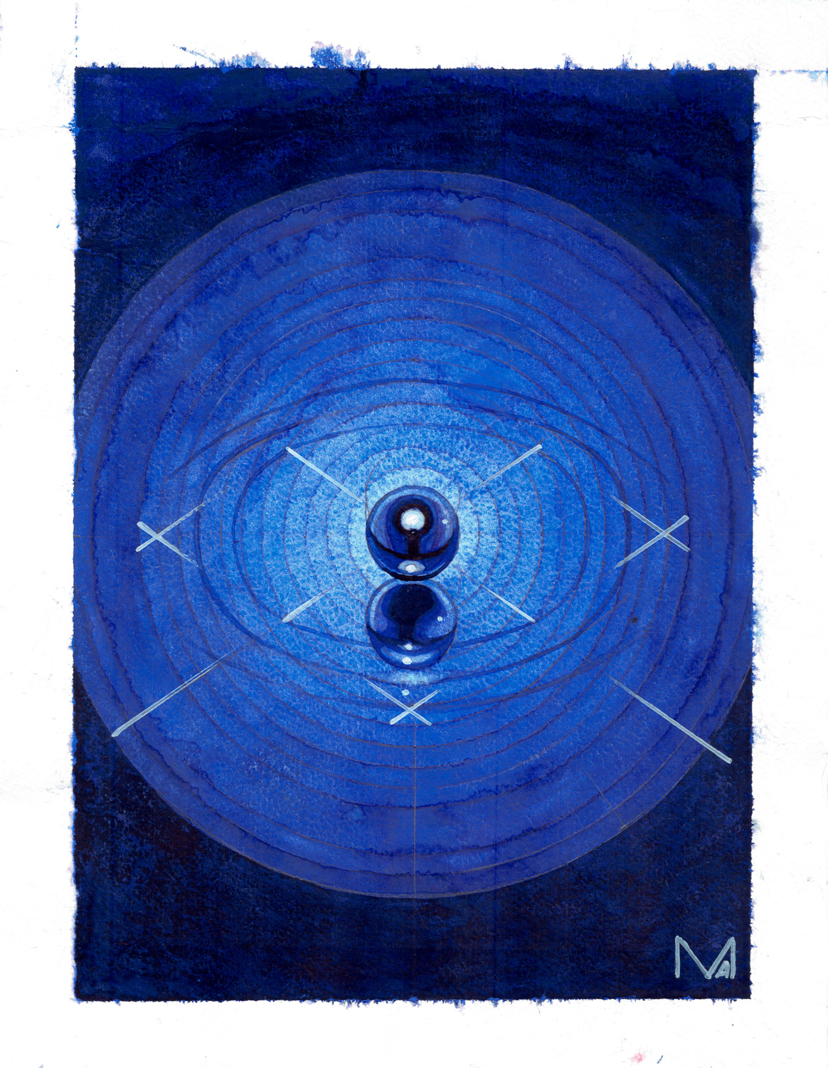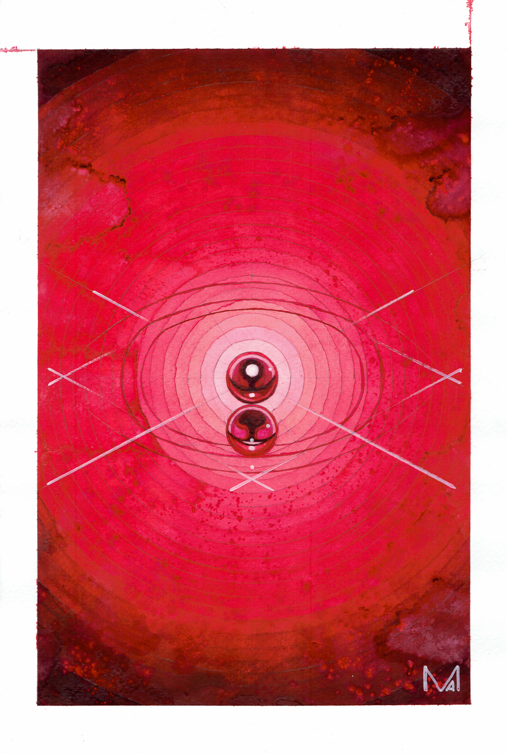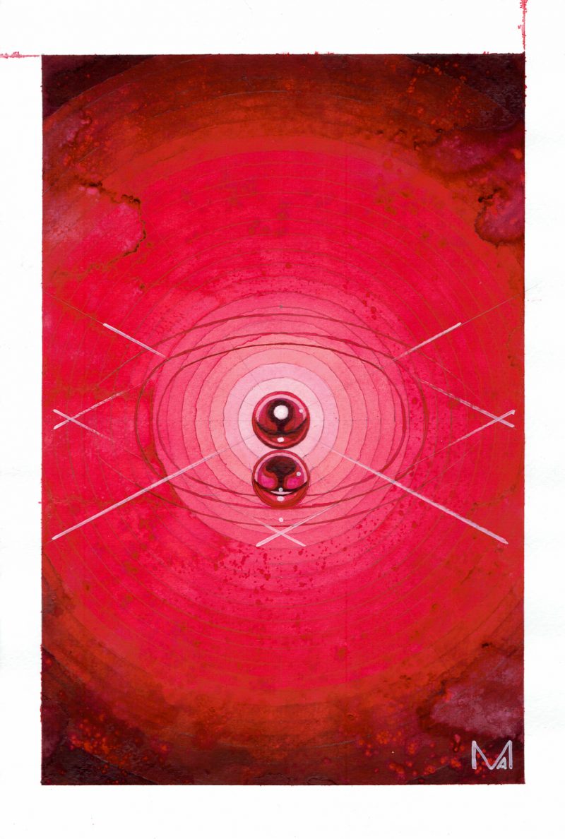 Mediums: Watercolour and rangoli pigment on paper. Dimensions: 16,8x25,4cm